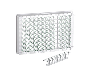 96孔ELISA微孔板,單孔可拆,12*C8,C型底,高結合力,透明色,綠色孔邊,10個/包